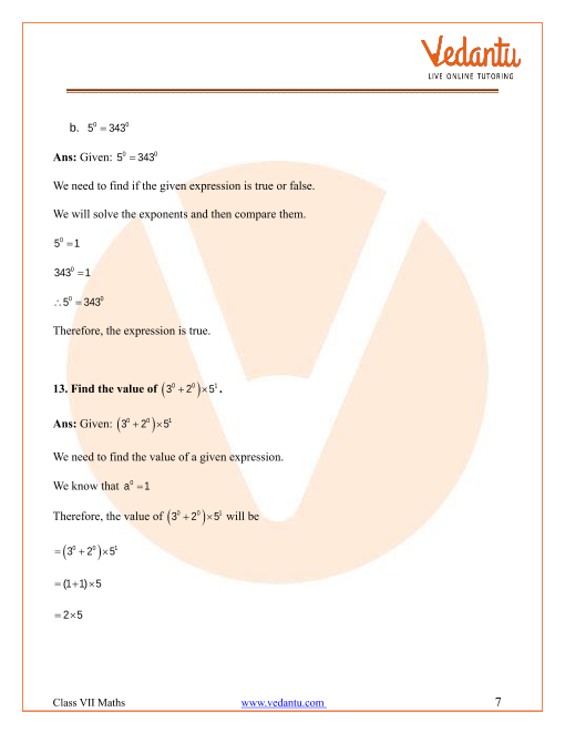 Ncert Solutions For Class 7 Maths Chapter 1 Integers Ex 1 3 Exercise 1 3