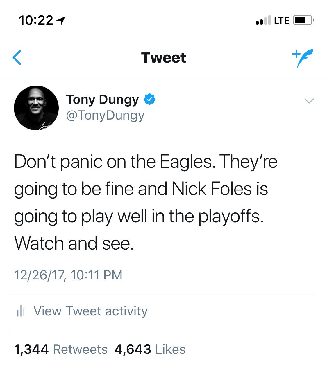 Tony Dungy On Twitter I Told Eagle Fans Back In December When Carson Wentz Got Hurt Your Team Could Still Win Eagles Have A Complete Team And A Great Coaching Staff Thank